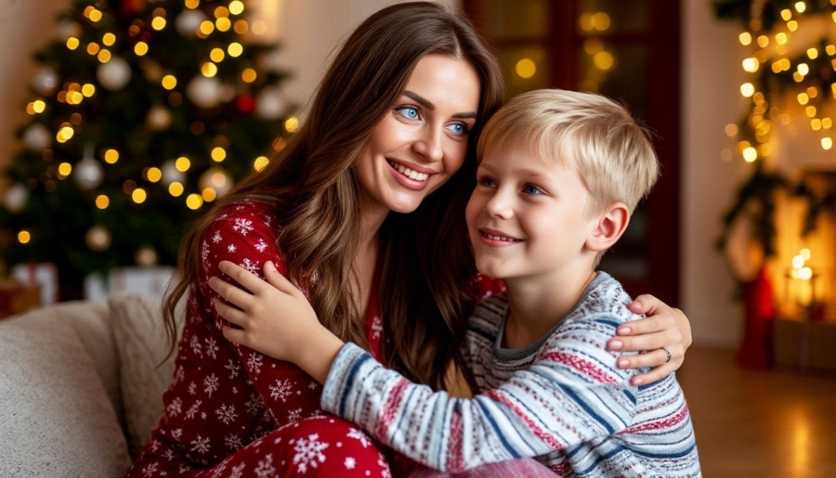 Они шли домой втроём — мама, Петя и Рыжик. Снег кружился вокруг, фонари светились тепло, и казалось, что весь мир стал добрее.