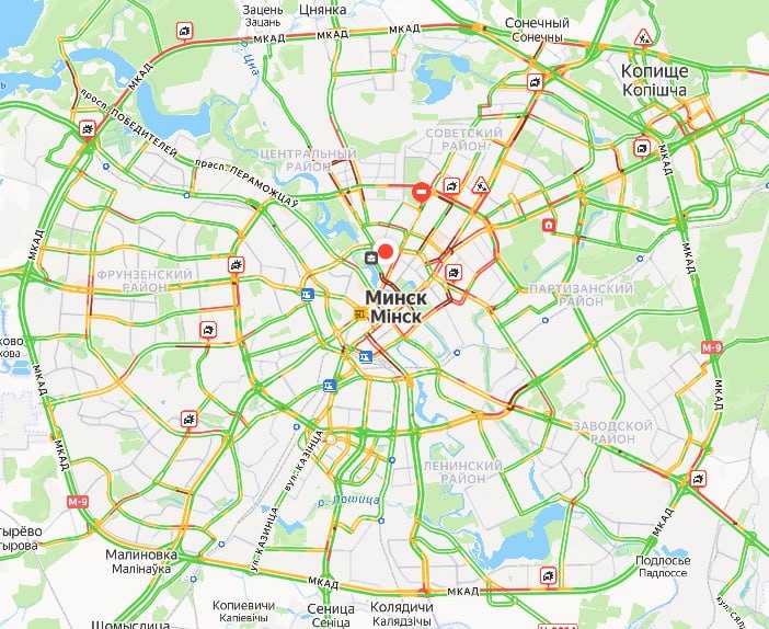 Минская классика: в столице 9-балльные пробки, следует из данных сервиса "Яндекс. Карты"