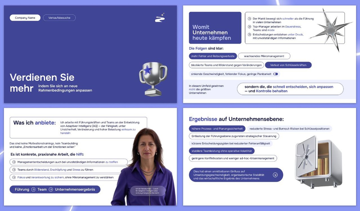 И я это повторяю снова и снова. Красивый сайт — это витрина. Но если внутри пусто или написано «ни о чём», то человек просто проходит мимо. Часто кажется, что проблема в дизайне, «вот сделаю покрасивее и будет продавать». А на деле проблема в текстах и смыслах. Потому что продаёт не цвет кнопки, а ощущение: «Меня тут поняли. Мне сюда». Иногда не нужно переделывать сайт с нуля. Достаточно чуть переписать смыслы — и он начинает работать. Так мы сделали у Наташи — пересобрали тексты на её сайте под личный и бизнес-коучинг. А ещё сделали новое коммерческое предложение: структура, тексты, перевод на немецкий и дизайн (на фото странички из нового КП). Теперь можно смело отправлять его в компании потенциальным клиентам! Отзыв от Наташи💙 Если чувствуешь, что сайт есть, а эффекта нет — возможно, дело не во внешнем виде. Если нужно переупаковать смыслы и/или сделать всё с нуля — пиши @Katgru, обсудим, я не кусаюсь) На январь ещё можно занять место. С нового года цены поднимаются
