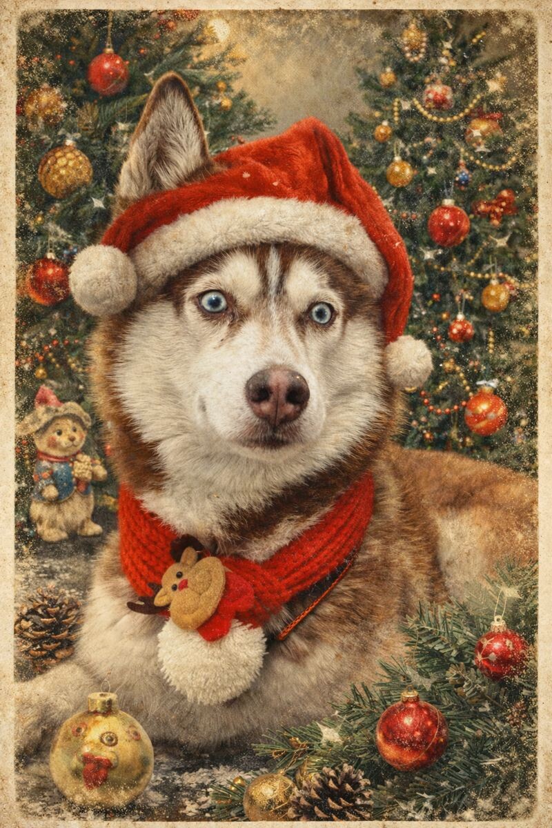 🎄 Как сделать старинную новогоднюю открытку со своим питомцем с помощью ИИ