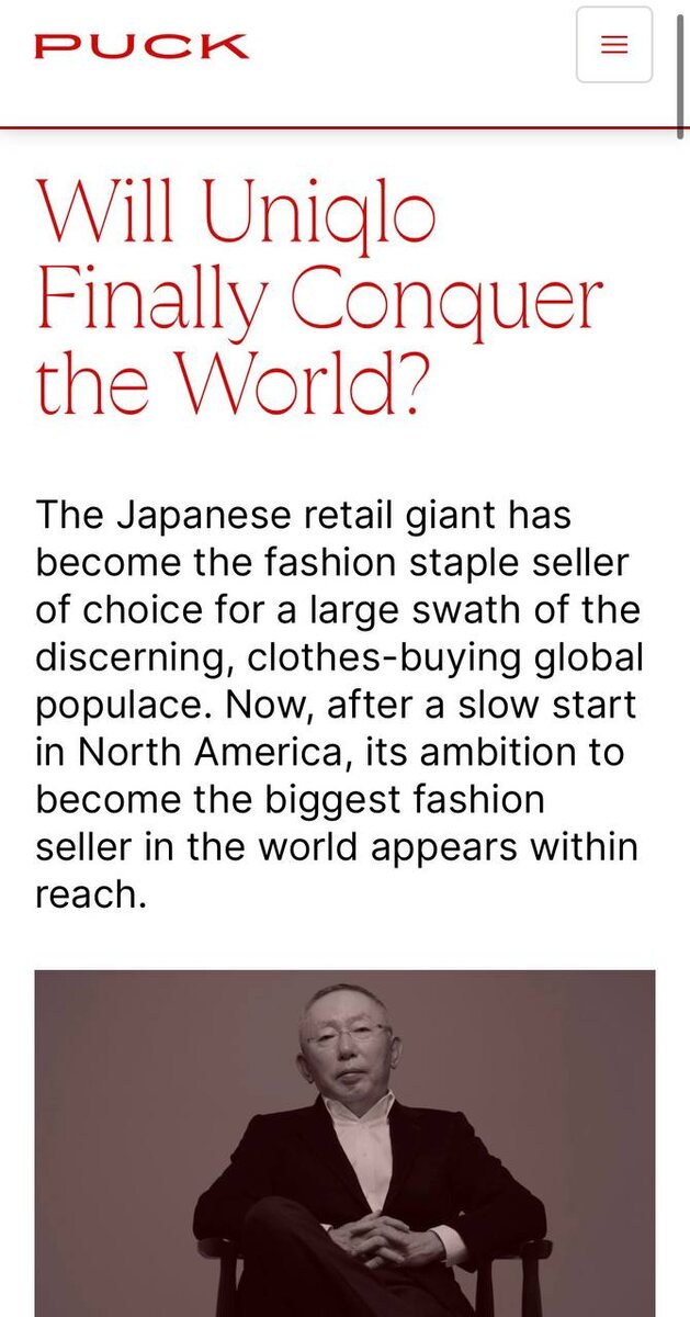 Uniqlo для меня как тот главный герой фильма про апокалипсис - вопреки цунами, землятрясению и другим внезапным сюрпризам он не просто выживает, а действует уверенно. Уходящий год для него настолько же хороший, насколько для других на фэшн рынке унылый. Влияние японского бренда в какой-то момент стало настолько большим, что вот уже выходят материалы под заголовком «Сможет ли Юникло завоевать мир?». Тадаси Янаи второй по богатству человек в Японии. 2500 магазинов в Азии, Европе и Северной Америке. Говорят, что у каждого четвертого японца пуховик Uniqlo. Там это аналог Walmart/Amazon. Есть даже местное сленговое слово «Unibare» (слияние Uniqlo и японского слова, означающего «обнаженный» - bareru). Оно обозначает момент, когда кто-то понимает, что на вас одежда Uniqlo, а не какого-то дорогого бренда. Это отражает и узнаваемость Юникло, и то, как японский бренд заменил люкс. В чем успех, я уже коротко отмечала. Uniqlo выбрал роль универсального поставщика модной одежды. Вещи бренда неза