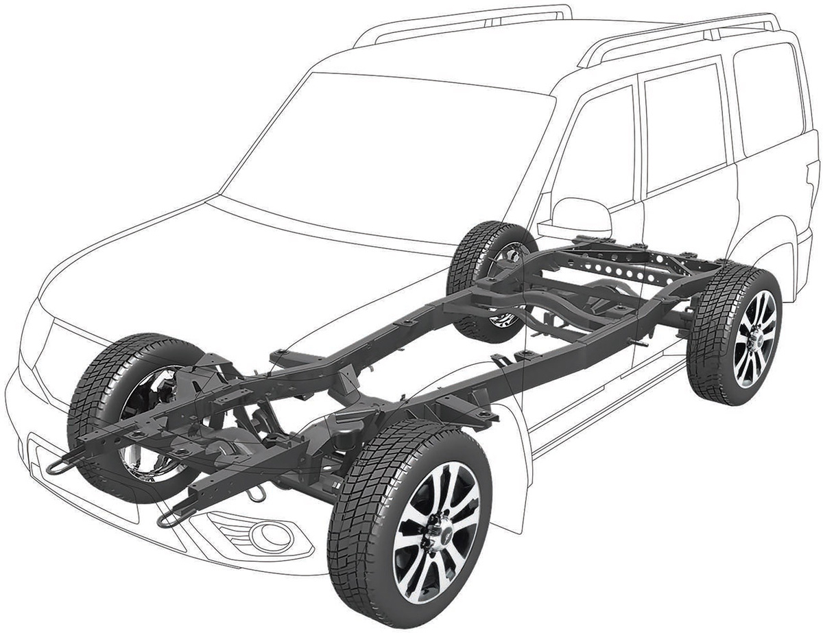 Зимние дороги в России — это не просто снег и лёд. Это глубокие колеи, обледенелые ухабы, подтаявший асфальт и непредсказуемое бездорожье за городской чертой. На таком покрытии даже полный привод не всегда гарантирует уверенность. Почему одни машины служат долго, а другие ломаются после нескольких поездок? Всё дело в конструкции. Для водителей, которые ездят не только по трассам, но и по лесам, фермам или стройкам, рамная конструкция важна. Она обеспечивает долговечность, ремонтопригодность и безопасность автомобиля. Рамная конструкция — это когда кузов автомобиля опирается на отдельную несущую раму. Она сделана из прочной стали и служит основой для двигателя, подвески, мостов и других узлов. В отличие от несущего кузова (как у большинства легковушек), схема следующая: Поэтому рамные автомобили, такие как УАЗ «Патриот», «Профи» и «Буханка», а также пикапы и другие внедорожники, остаются популярными среди тех, кто работает, а не только ездит. Рама, проверенная снегами и болотами, станов
