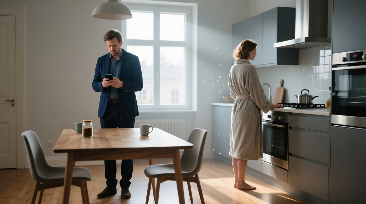 День начался с тишины. Эта тишина наступала каждое утро, когда Семён, мой муж, стремительно пил кофе, уткнувшись в экран телефона. Его пальцы лихорадочно скользили по стеклу.