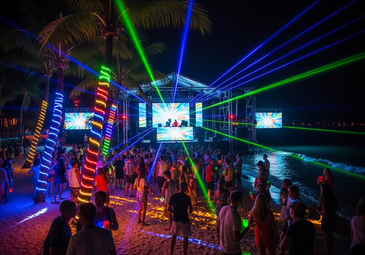 Январь на Самуи станет месяцем, когда пляжи наполнятся дым-машинами, яркими световыми лучами, синхронными танцевальными шоу и живой карнавальной атмосферой — прямо как на Сан-Антонио Бэй, но с тропическим шармом Таиланда.