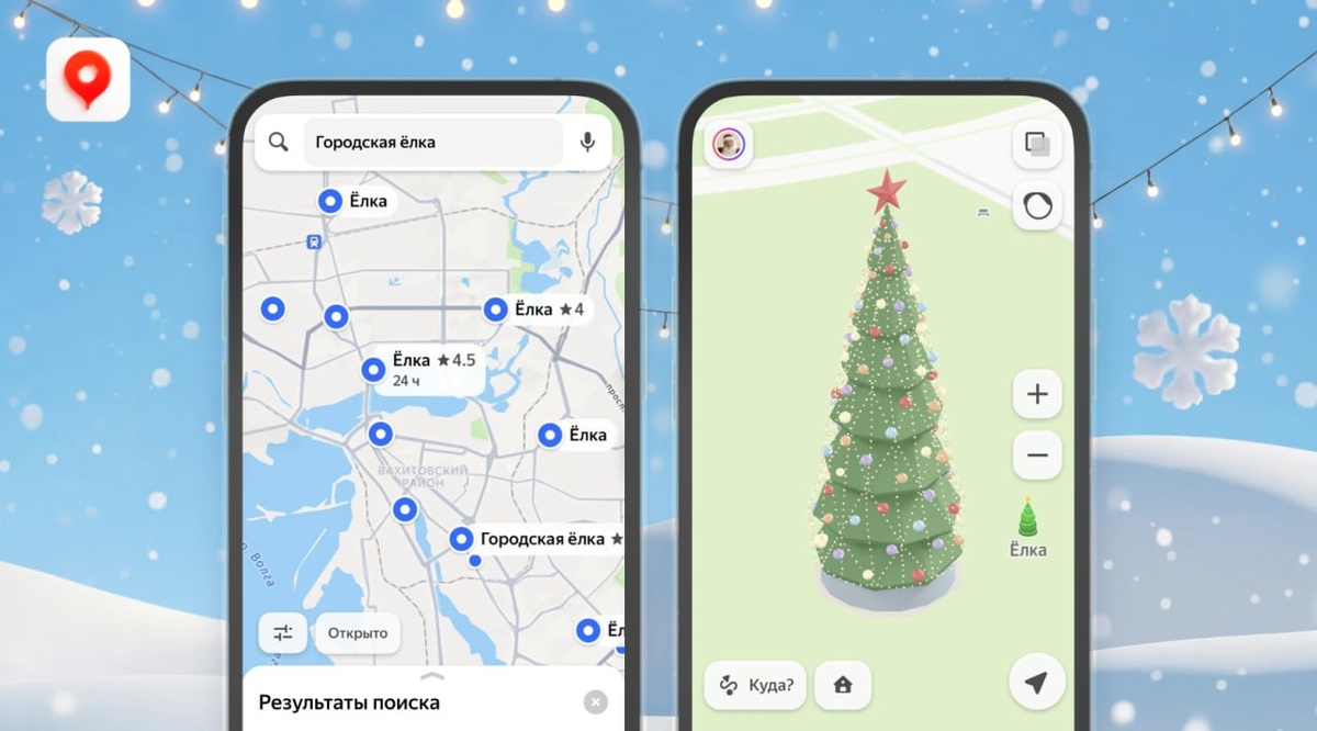 В сервисе Яндекс.Карты появился зимняя модификация с 3D-ёлками, катками и резиденциями Деда Мороза. Найти новые элементы можно в разделе «Зима» или через обычный поиск.