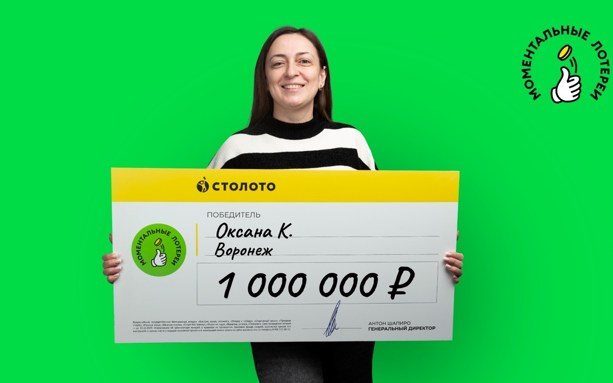 Домохозяйка из Воронежа Оксана К. впервые в жизни приобрела лотерейные билеты и сразу же стала обладательницей приза в 1 млн рублей. Об этом в среду, 24 декабря, сообщила пресс-служба «Столото». Женщина призналась, что ее супругу неоднократно везло на приятные выигрыши в государственных лотереях. В этом году горожанка решила поддержать хобби мужа, купив пять билетов моментальной лотереи, один из которых принес ей крупную сумму. – Сразу же начала стирать защитный слой, когда увидела в игровом поле три короны, то показала билет мужу и сказала, что, наверное, получу 1 тысячу рублей. Он мне возразил и сказал, что мой выигрыш – 1 млн рублей, – вспоминает счастливица. Миллионерша раньше работала бухгалтером, но сейчас занимается воспитанием двоих детей. Домохозяйка пока не решила, на что потратит призовые деньги.