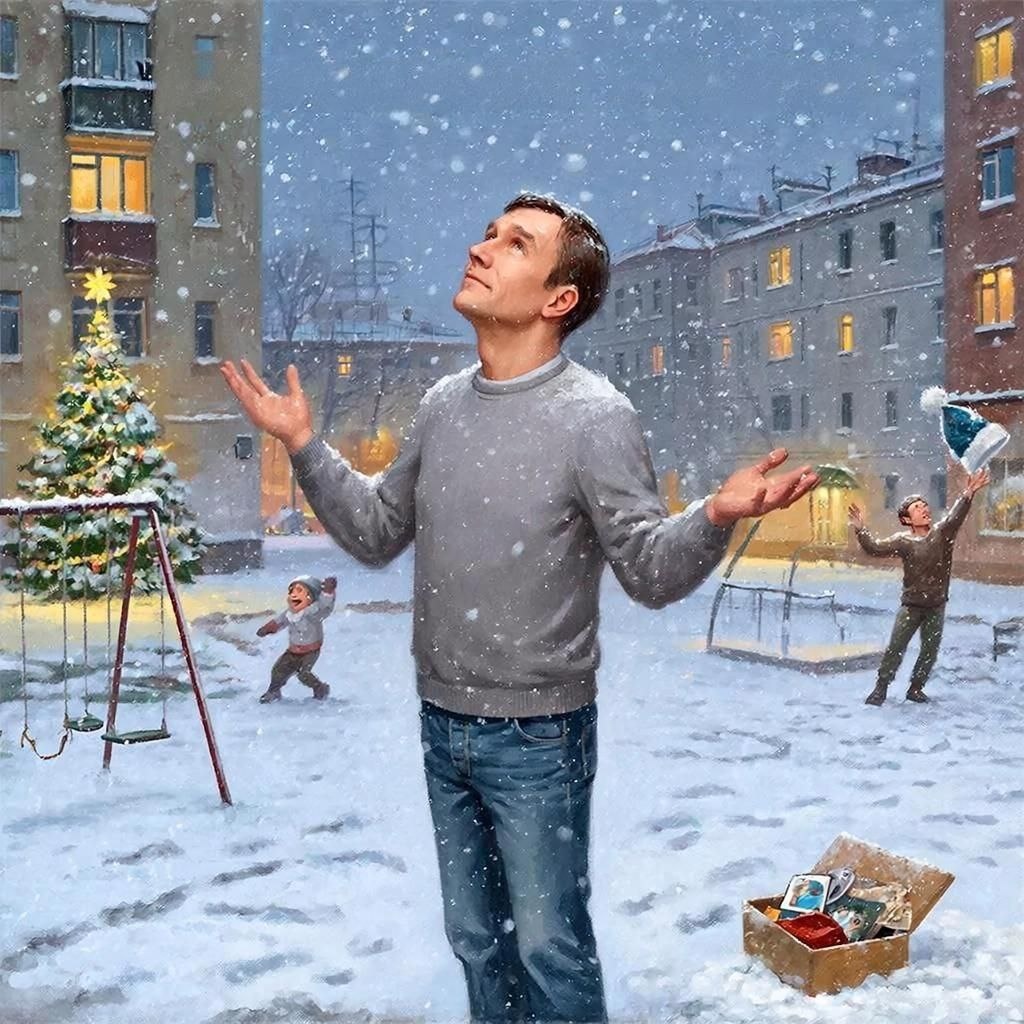 ▌ Сказка: Возвращение к жизни Александр стоял у окна своего офиса, потирая замерзшие пальцы рук. За окном падал пушистый снег, окрашивая улицы Москвы в белые тона. Вечером предстояло празднование Нового Года, но ни радости, ни предвкушения торжества он не испытывал. Последние годы были тяжелыми. Развод оставил глубокую рану в душе, карьера застопорилась, близкие друзья стали реже появляться в его жизни. Каждое утро начиналось одинаково: подъем, кофе, метро, офис, работа до позднего вечера. Даже новогодние праздники перестали радовать — ещё недавно он любил украшать дом гирляндами и встречать друзей, теперь же предпочитал проводить время дома, заказывая еду онлайн и листая соцсети. Вечером, возвращаясь домой, Александр услышал музыку из соседской квартиры. Сосед, пожилой профессор психологии, иногда приглашал студентов на занятия прямо к себе домой. Обычно музыка раздражала Александра, но сегодня она привлекла внимание. Было слышно, как голос профессора рассказывал студентам о том, к