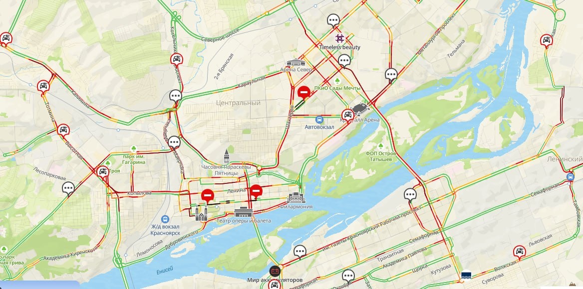 🚗 Бордовым на онлайн-картах горят все основные улицы города, много отметок об авариях. «Братцы, давайте скорее. Домой очень хочется», – просит красноярец в комментариях на онлайн-карте. ТВК