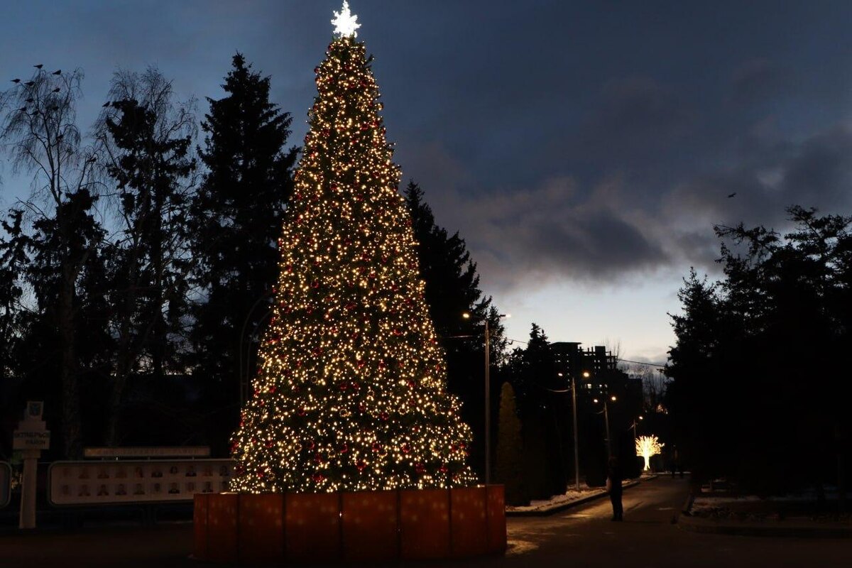 Посмотрите, как выглядит новая ёлка в горпарке с праздничным освещением