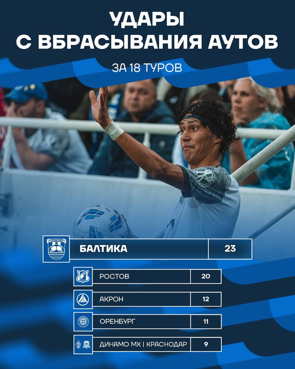 После 18-ти туров «Балтика» стала лидером РПЛ по ударам с аутов (23) — это мощное оружие в атаке команды 👈