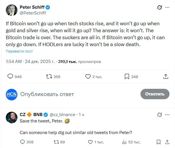 : никогда. Трейд на биткоине окончен. Наивные инвесторы уже все в игре. Если биткоин не может расти, ему остаётся только падать. Если ходлерам повезёт, это будет быстрая смерть. Сохрани этот твит, Питер. 🤣 Может кто-нибудь помочь найти похожие старые твиты от Питера?