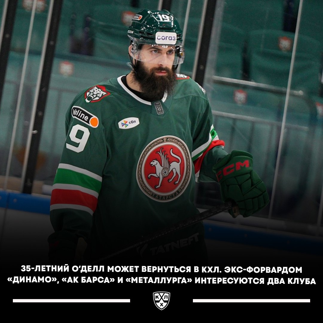 ✍️ Отмечается, что бывший форвард «Динамо», «Ак Барса», «Металлурга» и «Сочи» входит в сферу интересов двух клубов лиги. Сейчас он находится без контракта в какой-либо лиге. 🚨 В прошлом сезоне О’Делл провел 49 матчей за «Ак Барс» и «Динамо» с учетом плей-офф, набрав 17 (7+10) очков.