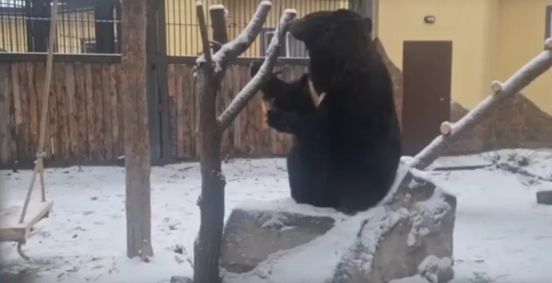 Гималайская медведица Пуша из Воронежского зоопарка вышла на прогулку: видео