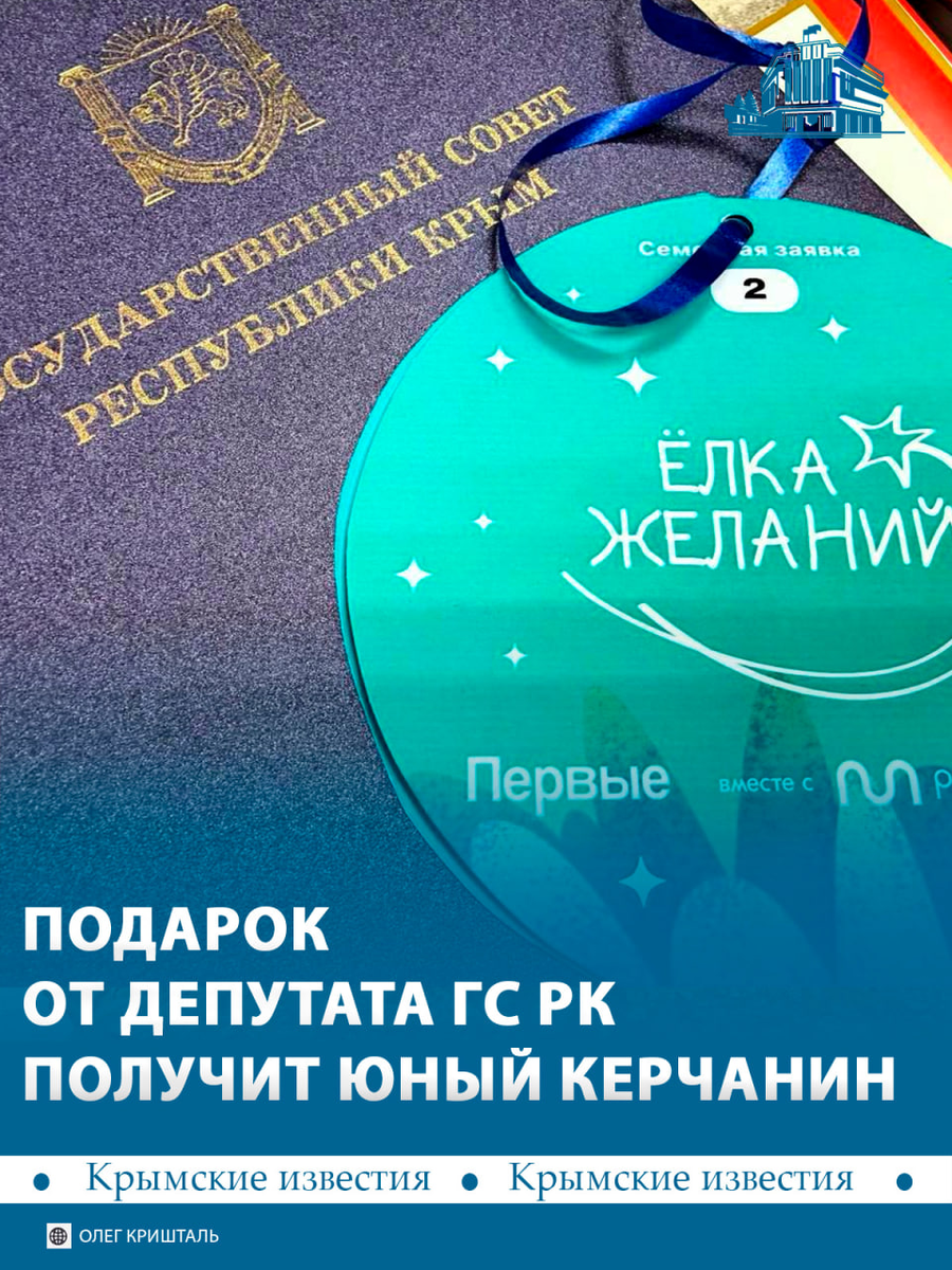 🎁 Новогодний подарок получит юный крымчанин от депутата крымского парламента. Праздничную мечту 16-летнего Романа вытянул из «Ёлки желаний» Олег Кришталь. Юноша попросил о подарке-сюрпризе. Присоединиться к Всероссийской акции можно до 20 февраля на сайте Ёлкажеланий.РФ Мы в телеграм 👉 https://t.me/newcrimiz
