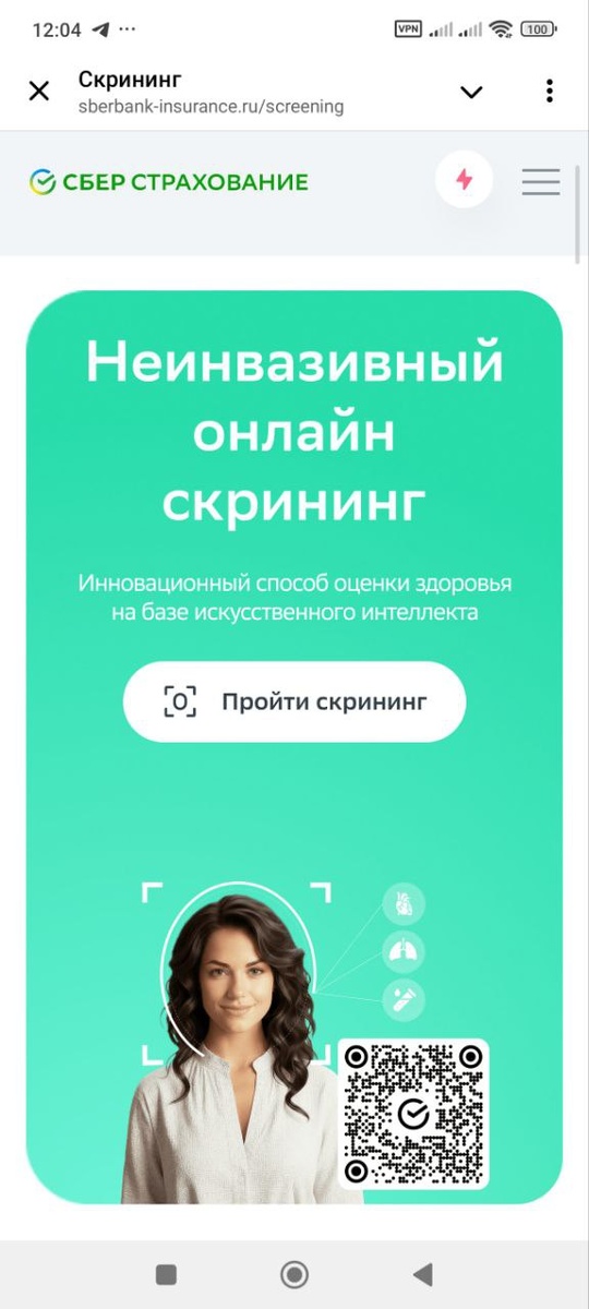 ))) 🤩 НЕ ИНВАЗИИВНЫЙ (без вмешательства) ОНЛАЙН СКРИНИНГ - общая оценка состояния здоровья Сбер придумал весьма интересный способ!! И любопытный исследовательский мозг не смог пройти мимо, даже не имея карты Сбера у меня все получилось. Если у вас есть - дело вообще пары минут В целом и в общем: вводим анкетные данные, галочки на согласие, проверяем интернет и вырубаем ВПН. Подносим камеру к личику и ждём результат Я бы скептически отнеслась к фразе, что система считывает невидимые изменения на лице, преломление и отражение света, что аж анализ сердцебиения готовы дать , если бы.... результат РЕАЛЬНО не показал мое физиологическое снижение пульса в покое. Это мои кардиопопрыгушки, для меня это норма. Естественно, результаты не заменяют консультацию врача и не является диагнозом , но попробуйте, если интересно)) https://sberbank-insurance.ru/screening/ Мои результаты выше, кидайте свои в комментариях 😊❤️ П.с. результат выдаётся молниеносно на экран и дублируется на почту Забы