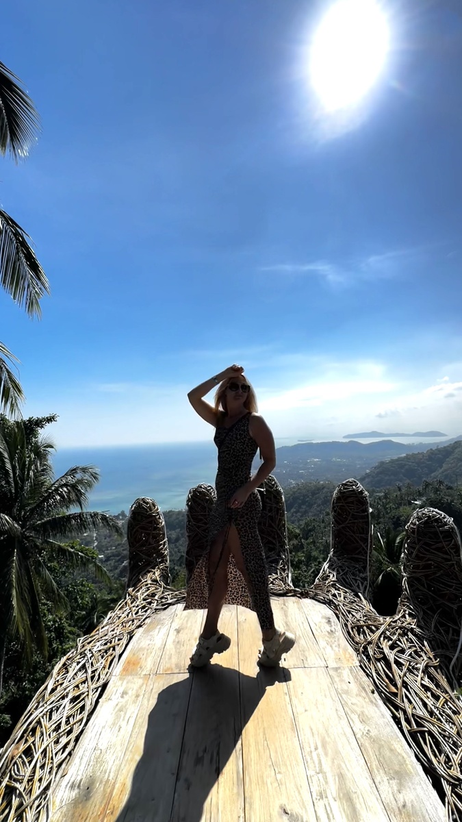 Место невероятно красивое и очень атмосферное. Ты находишься высоко в горах, вокруг джунгли, внизу — море и побережье. Самое классное — здесь очень много фотозон, и они реально сделаны со вкусом, а не «для галочки». Я получила огромное удовольствие и от видов, и от самого пространства — всё ухожено и продумано для посетителей.