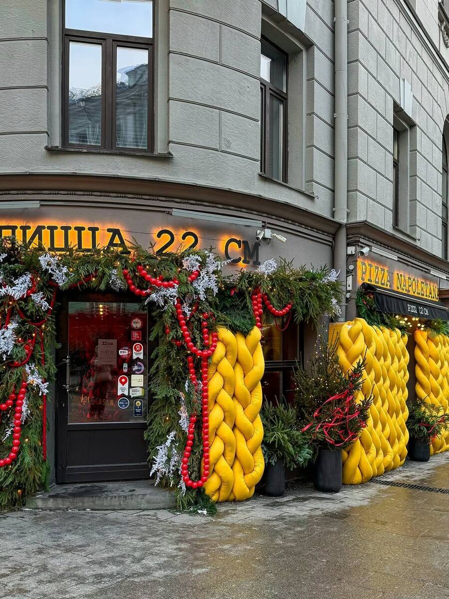 Новогодний фасад Pizza 22 cm, словно ожившая картинка ИИ
