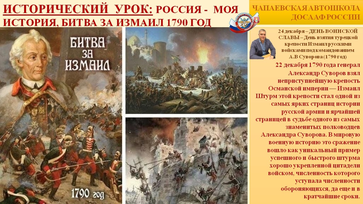 Исторический урок в Чапаевской автошколе ДОСААФ: 235 лет со дня взятия Измаила