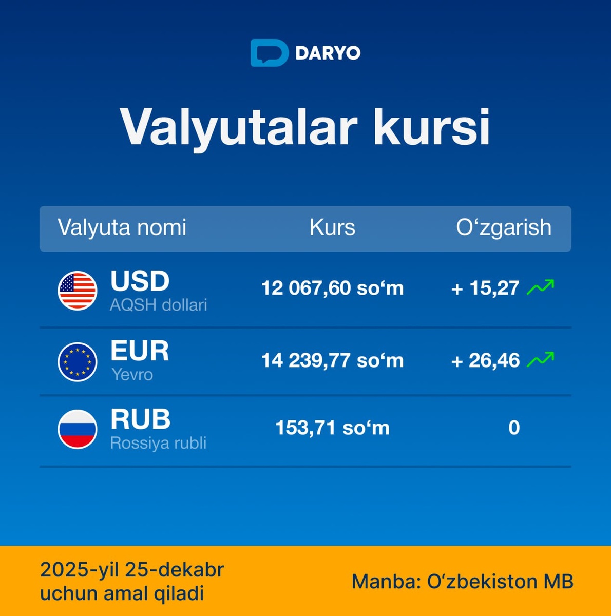 🇷🇺 rubl 153,71 soʻm (o‘zgarmadi)