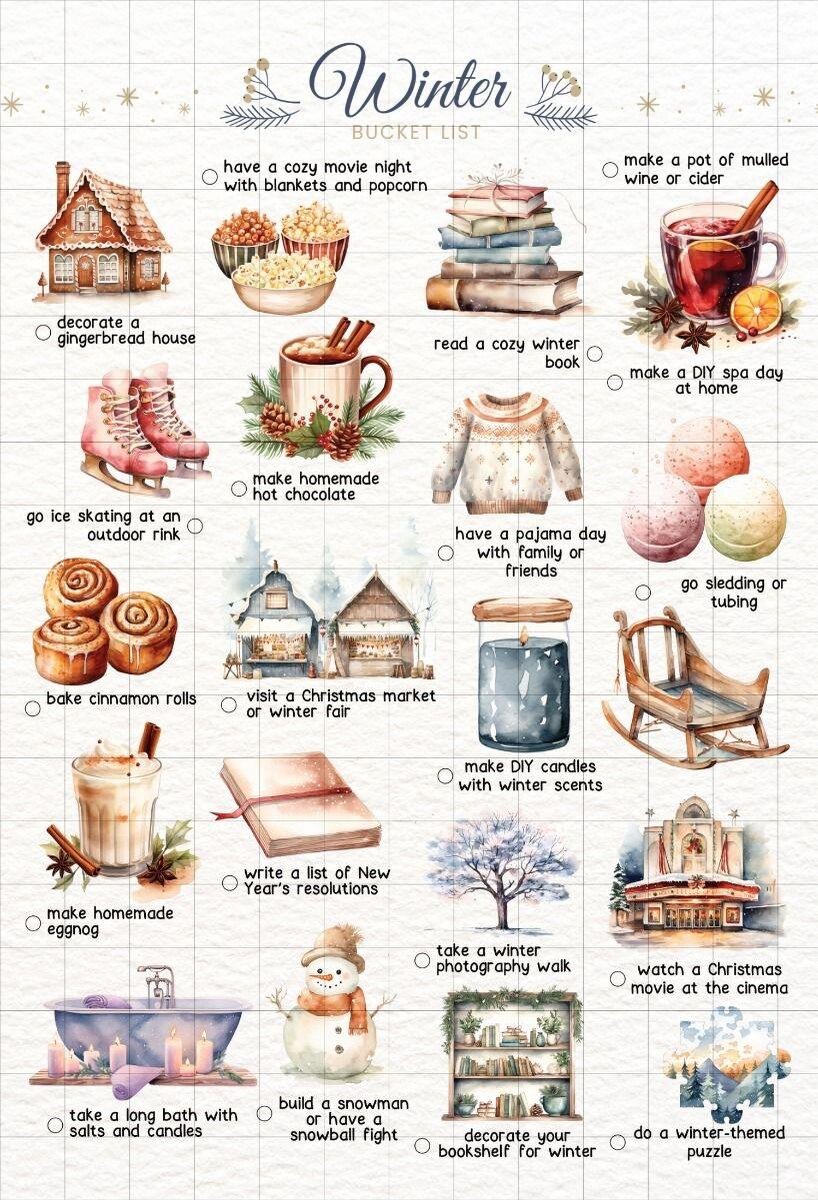? ❄️Are there any activities on this list that you have already done this season? ❄️Is there anything missing from this list that you think is essential for a perfect winter? ❄️Do you prefer indoor "cozy" activities or outdoor "active" activities? ❄️What is your "go-to" comfort food when the weather gets freezing outside? ❄️If you were to have a "DIY spa day at home," what would your routine look like? ❄️The list suggests a "pajama day." What is the longest you have ever stayed in your pajamas during the winter holidays? ❄️When it comes to reading a cozy winter book, do you have a specific genre you prefer? ❄️Have you ever been ice skating at an outdoor rink? Did you find it difficult to keep your balance? ❄️If you had to choose between a snowball fight and building a snowman, which would you pick? ❄️What makes a winter photography walk different or more challenging than a walk in the summer? ❄️☃️❄️🎄