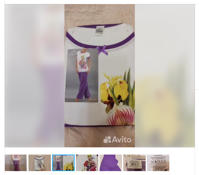 Недавно нашла в своих закромах новую нераспакованную пижаму. Лежит она у меня, судя по дате на этикетке, лет 10-12. Покупала ее себе в группе совместных покупок. Очень я люблю там закупаться. Планирую написать статью об этом своем опыте. Может быть, кому-то будет интересно, потому что стаж "закупанта" у меня очень большой. Сегодня от темы отходить не буду. Так вот та пижама была моей неудачной тогдашней покупкой. Почему неудачной? Потому что у нее оказался плохой состав. Я уже, если честно, не помню обстоятельств, как я с таким составом могла ее купить, но факт остается фактом: 65% полиэстер, 35% вискоза. Вообще не вариант. Я, в принципе, ношу натуральное, ну или где преобладают натуральные волокна. А уж как спать в синтетике совсем не представляю. И вот я выставила эту пижаму на Авито. Достала из упаковки отфоткать и опять аккуратно сложила. Про состав, естественно, в объявлении указала. Этикетку, где вся информация о составе и о дате производства, крупно сфотографировала. И вот пише
