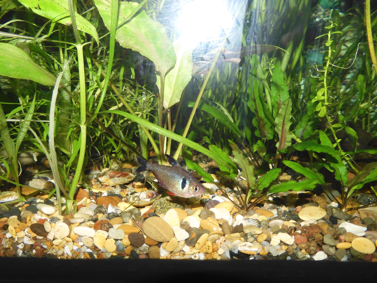 14 день. Самка скалярии жадно ест. Пельвикахромисы по утрам дёргаются. Лабео пропал. У расборы пропала точка. Все чистые. У скалярии самца впервые появились 2 точки на плавнике.