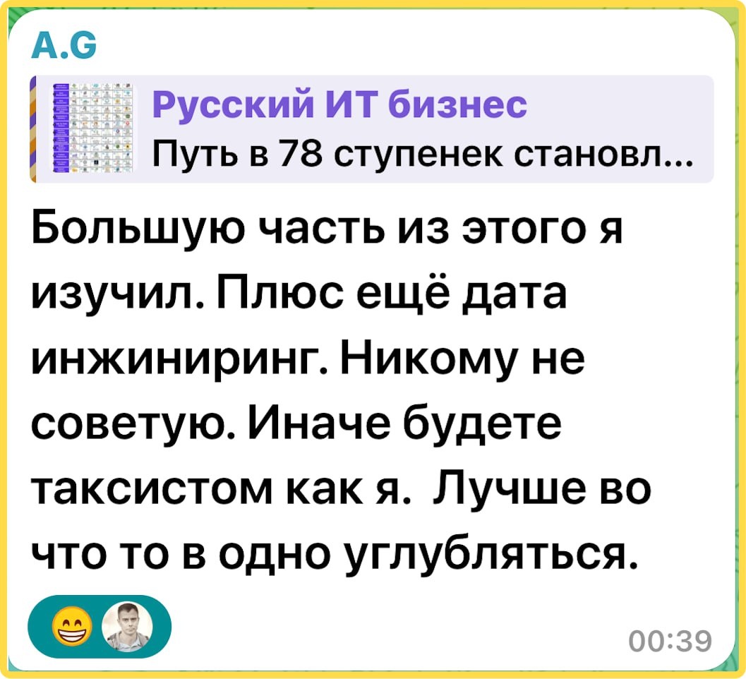Публиковал путь из 78 ступенек, чтобы стать мощным Data Scientist, вот такой комментарий не мог не утащить из чата :) Может лучше купить