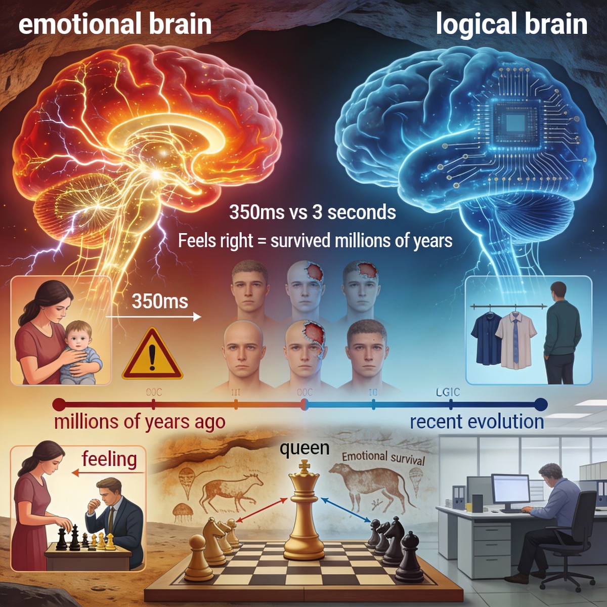 Эмоции — это быстрые системы принятия решений, которые эволюционировали намного раньше логики.