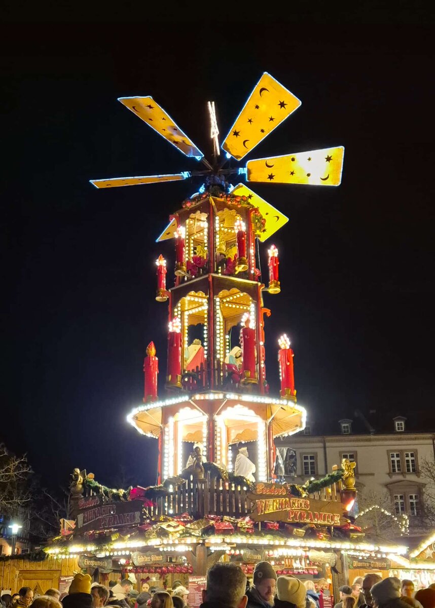 В субботу мы с женой отправились на рождественский рынок нашего баварского города. Чтобы людей посмотреть и себя показать. Тем более, что по субботам весь общественный транспорт, включая пригородные поезда, в нашем городе бесплатный. Возле рождественского рынка со стоянками напряженка, а остановка совсем рядом, поэтому удобнее ездить туда на автобусе. Вот несколько фото с рождественского рынка 2025 года.