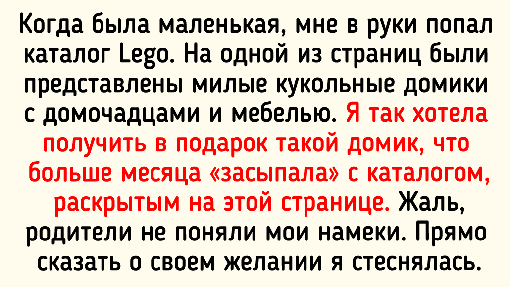 - Недавно столкнулась в магазине с парнем, по которому сохла еще в школе. Мне было 13, ему 15. Играли как-то раз все вместе на улице в мяч, друзей родители домой загнали и мы остались вдвоем. Стою и думаю, что ну вот сейчас он меня поцелует, а он такой: «Было классно, как-нибудь повторим» — и ушел. Так вот. Стоим в магазине, вспоминаем детство, он выдает: «Так хотел к тебе подкатить тогда, даже мама мне говорила: „Чего ты ждешь, сынок?“». Я намекаю, мол, вот сейчас у тебя есть шанс наверстать упущенное, а он такой: «Ага, был рад встрече, пока».