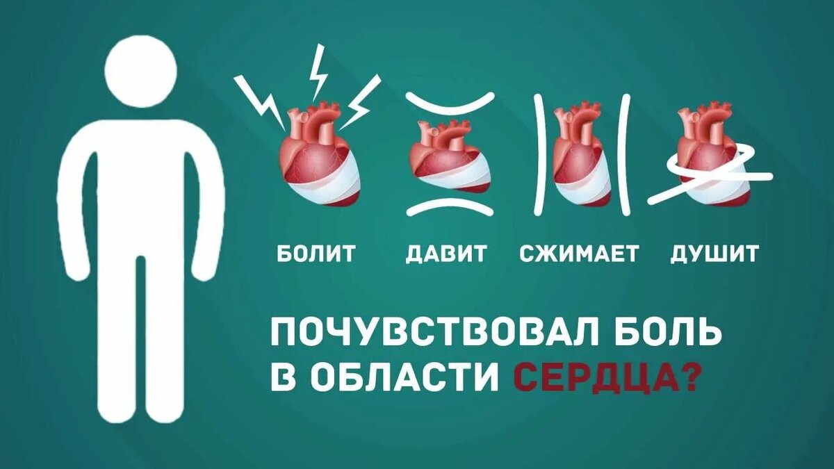 Такая боль может быть тупой, давящей, жгущей или ощущаться как тяжесть. Она может длиться несколько минут, то усиливаясь, то ослабевая. Особенно настораживает, если она возникает при нагрузке и проходит в покое.