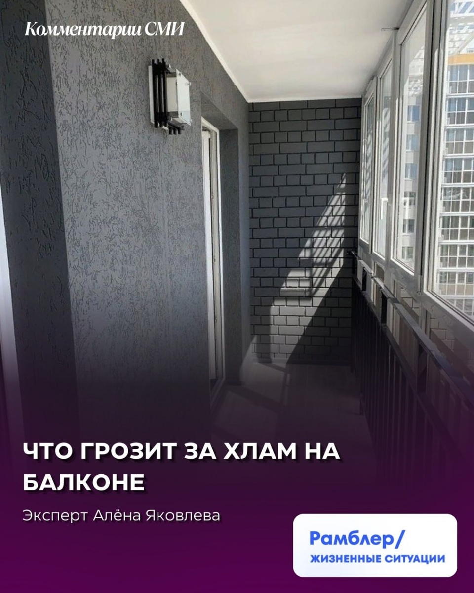 Хранение старой мебели, коробок, бытовой техники и горючих веществ на балконе — распространённая и опасная бытовая привычка. Такой «склад» может обернуться для владельцев проблемами с законом. Вместе с экспертом разъясняем, что за это грозит и как избежать проблем. Основатель и управляющий партнер ГК «РосКо» Алена Яковлева рассказывает о том, что нельзя хранить на работе. 💬Единого списка запрещённых для хранения вещей нет. При этом закон не допускает хранение пожароопасных веществ и крупногабаритных предметов, которые создают риск перегрузки конструкции. Кроме того, нельзя размещать на балконах и лоджиях мусор, бытовые отходы, чтобы не нарушить правила противопожарного режима и нормы безопасности жилых зданий💬, — прокомментировала Яковлева. Подробнее о законодательных нормах касательно балкона вы можете прочитать здесь: https://life.rambler.ru/laws/55530775-chto-grozit-za-hlam-na-balkone/ 💼 RosCo|Подписаться