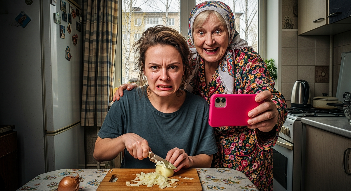 — Ой, Аллочка, ну что ты стесняешься? — пропела свекровь, не опуская новенький, блестящий смартфон в ярко-розовом чехле. — Ты у нас красавица в любом виде. Естественная красота, так сказать. Вот, смотрите, девочки, как моя хозяюшка ловко с луком управляется! Слёзы текут, а она режет! Героизм в быту!