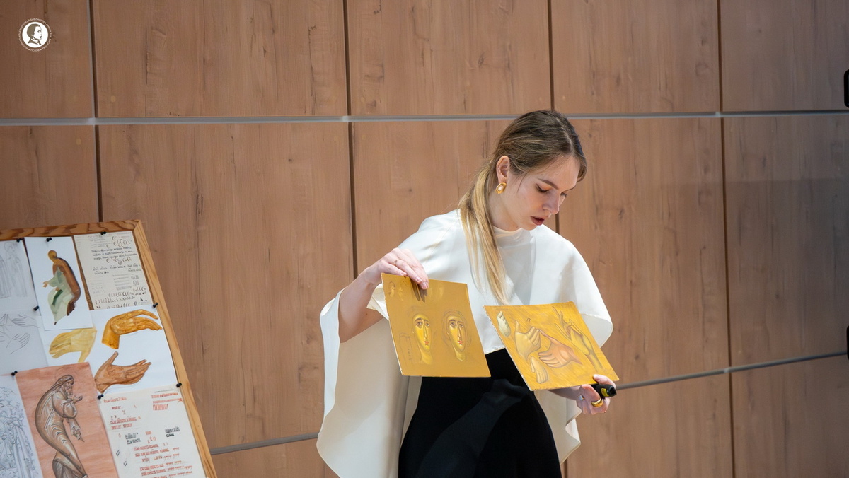 «Ученики мастерской не только осваивают тонкости древнего искусства, но и бережно продолжают традиции как псковской, так и московской иконописных школ, умело развивая их в контексте современных художественных тенденций. На выставке «Образ» представлены уникальные работы, выполненные как на традиционных досках – деревянных основах для икон, так и на так называемых «таблетках» – неболь