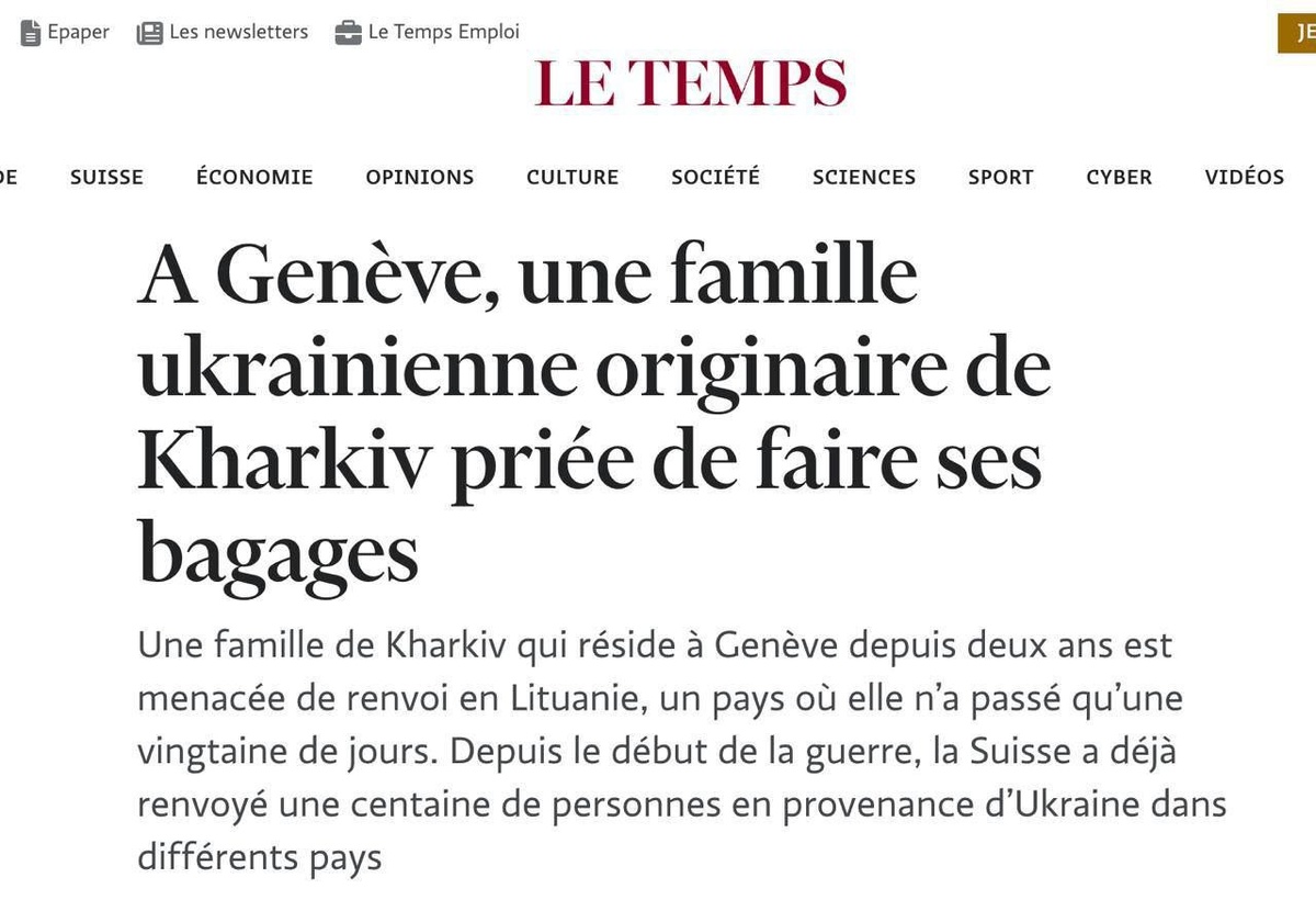 Европы, сообщает Le Temps. В большинстве случаев их отправили обратно в страны, где они сначала находились, включая Польшу, Румынию и страны Балтии. В отличие от стран ЕС, которые согласовали практику неприменения депортаций к украинским беженцам, Швейцария, не являющаяся членом Евросоюза, сохраняет за собой право на возврат таких лиц. По информации издания, подобные решения вызывают серьёзное беспокойство у правозащитников и международных организаций, занимающихся поддержкой беженцев. Примером является многодетная семья из Харькова. В начале конфликта они две недели прожили в Литве, а затем переехали в Швейцарию. Спустя несколько лет власти страны приняли решение депортировать их обратно в Литву, несмотря на длительное пребывание и интеграцию. Депортации, по мнению экспертов, поднимают вопросы о правовой защите беженцев и разнице в подходах к украинскому кризису между странами ЕС и Швейцарией. Представители швейцарских властей объясняют практику строгим соблюдением миграционного зак