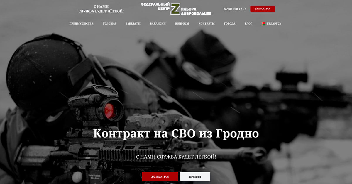 🔫Гродненцам предлагают оформить контракт на «СВО» — обещают «легкую службу