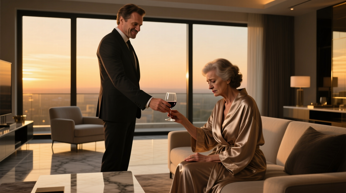 — Опять задумалась, дорогая? — раздался за её спиной голос, сладкий и колкий одновременно. Вошел Марк. Он был неотразим в своем домашнем кашемировом халате, подчеркивающим спортивное телосложение. — Вином в твоём возрасте лучше не злоупотреблять. Для сосудов вредно.