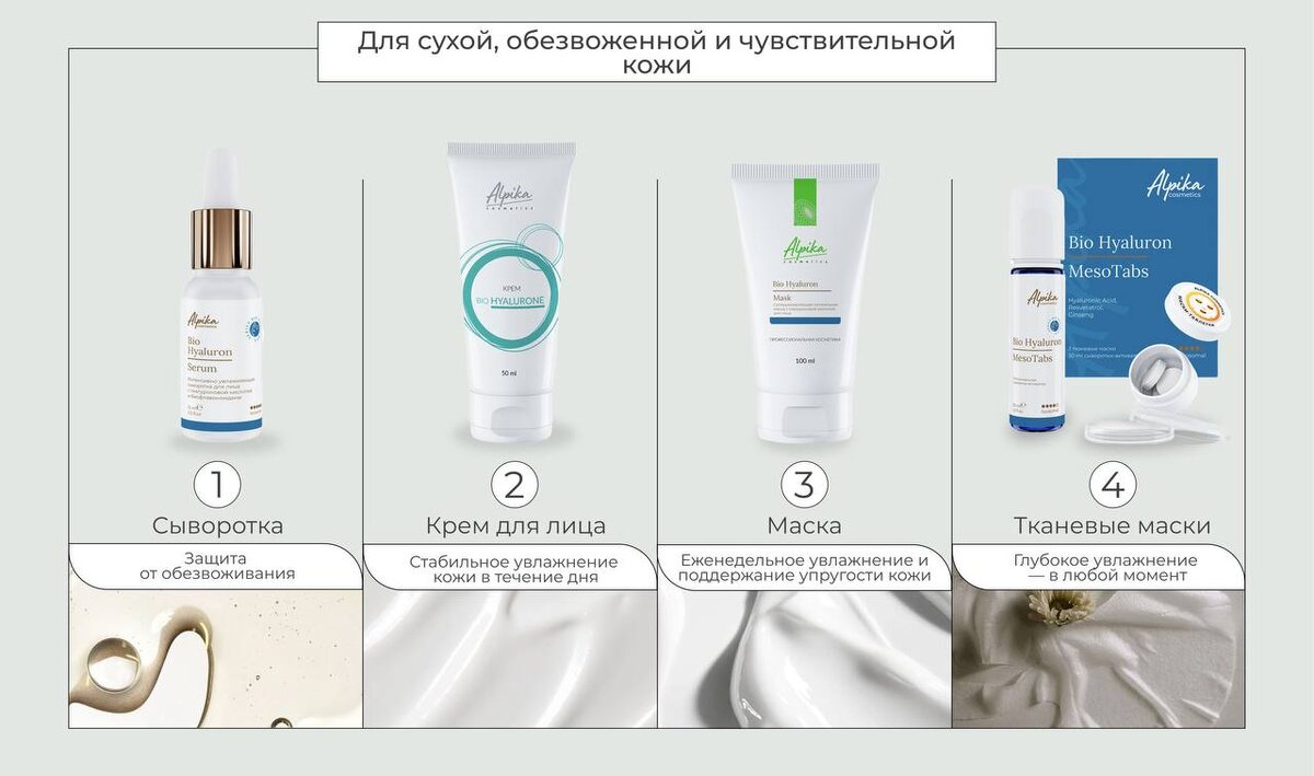 Стянутость, тусклый цвет, ощущение «сухой маски» уже через пару часов после умывания — знакомо? Это сигнал: коже не хватает глубокого, стабильного увлажнения, а не только крем Именно поэтому серия Bio Hyaluron работает так заметно👇🏼 ✨ Почему её выбирают снова и снова: 💦 липосомальная технология доставляет влагу в глубокие слои кожи, а не оставляет её на поверхности; 💦 гиалуроновая кислота трёх молекулярных масс наполняет кожу, удерживает влагу и выравнивает микрорельеф; 💦 ресвератрол, витамин B5 и коэнзим Q10 защищают кожу от стресса и обезвоживания; 💦 сок алоэ успокаивает, убирает стянутость и шелушения. 💆🏼♀️ Результат — кожа выглядит наполненной, гладкой и ухоженной уже после первого применения, а комфорт сохраняется в течение всего дня. Bio Hyaluron — это не «временное облегчение», а умное увлажнение, которое работает изнутри 👉🏼 Выбирай серию Bio Hyaluron на сайте Alpika и дай коже стабильное увлажнение, которое она действительно почувствует