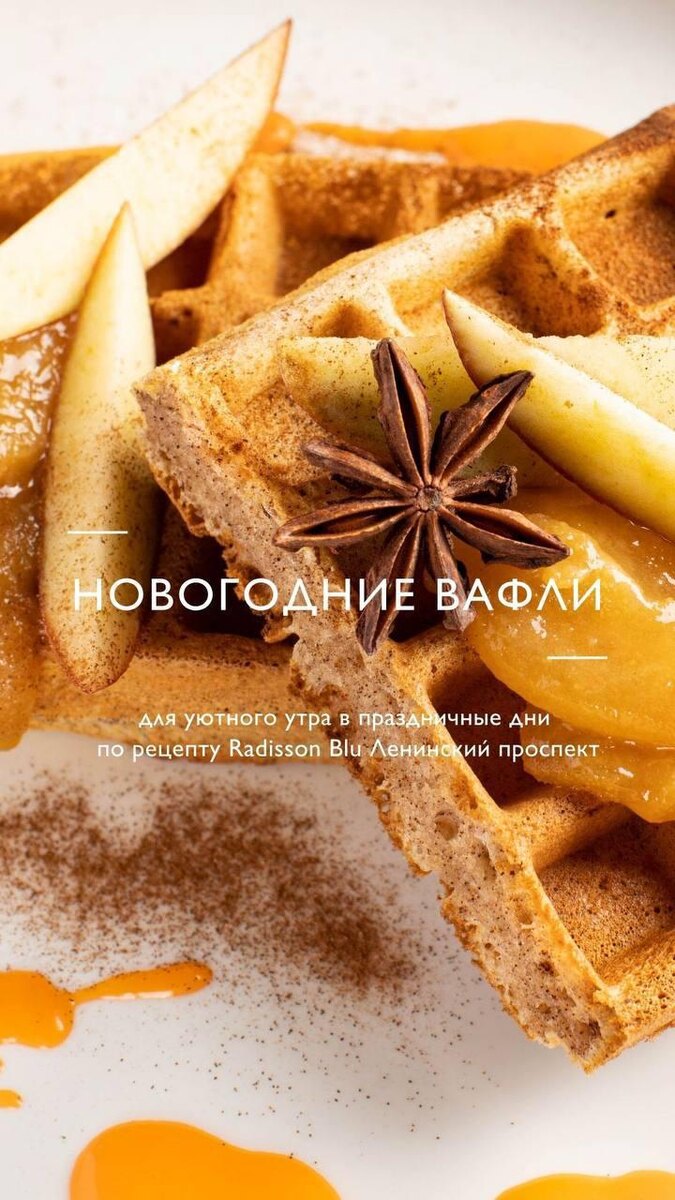 Овца Борис внимательно изучил новогодний рецепт вафель — всё как он любит: просто, понятно и с правильным отельным настроением. Яблоки с корицей, бадьян, карамель и аккуратная подача — красота! #гдеторядом