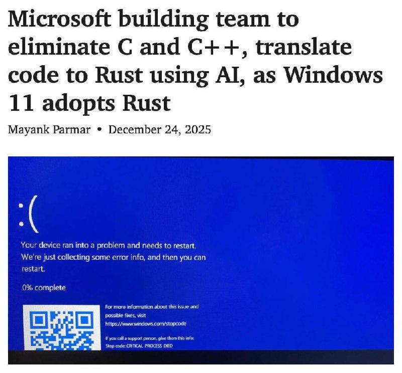 Всё планируется сделать в 2030 году. Разработчикам уже запретили писать новые приложения на C/C++, теперь подошла очередь и самой системы. Главный инженер Microsoft Гален Хант заявил, что его цель — уничтожить каждую строчку C и C++ в компании. Делать это всё собираются с помощью... нейросетей. Они будут улучшать миллионы строк кода, а инженеры будут за этим следить. Дабы не появились новые уязвимости. Контора переделок. 👉🏻Новости №1 в Ростове 💌Прислать новость/фото Ростов Папа теперь в Ⓜ️🅰️❌