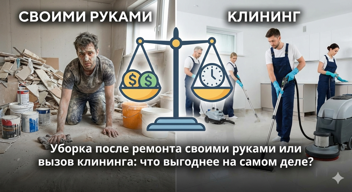 Ремонт закончился, а кошмар — нет. Считаем, сколько вы на самом деле теряете, пытаясь убраться сами Вы когда-нибудь пробовали отмыть строительную пыль? Вытираешь её влажной тряпкой, поверхность высыхает, а через 15 минут она... снова там. Белесая, въедливая и бесконечная. Многие новоселы на кураже решают: «Сэкономим! Сами отмоем за выходные». Но на практике «бесплатная» уборка превращается в финансовую ловушку и неделю каторжного труда. Давайте разберем по полочкам, почему профессиональный клининг — это не траты, а способ сберечь деньги. Первое, что делают многие — достают свой домашний Dyson или Samsung. Остановитесь! Обычный бытовой пылесос не рассчитан на мелкодисперсную бетонную пыль. Она проходит сквозь фильтры, забивает двигатель, и в 80% случаев техника просто сгорает. Строительные загрязнения (затирка, клей, краска, грунтовка) не смываются мыльной водичкой. Нужна спецхимия. Профессионалы возят с собой чемодан из 10–15 составов под каждый тип поверхности: от натурального камня
