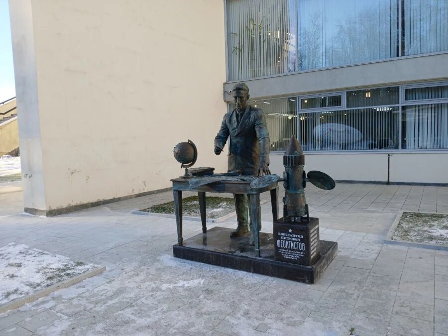 Во вторник, 23 декабря, в Калуге у старого здания Музея космонавтики открыли новый памятник - конструктору и космонавту Константину Феоктистову. Бронзовую композицию изобразили так, будто Феоктистов находится за рабочим столом: рядом с ним - чертежи, приборы, глобус и макет ракеты. Особое внимание уделено модели Тяжёлого межпланетного корабля, предназначенного для полёта к Марсу. Именно над этим проектом в 1960-х годах трудилась группа инженеров под его руководством.