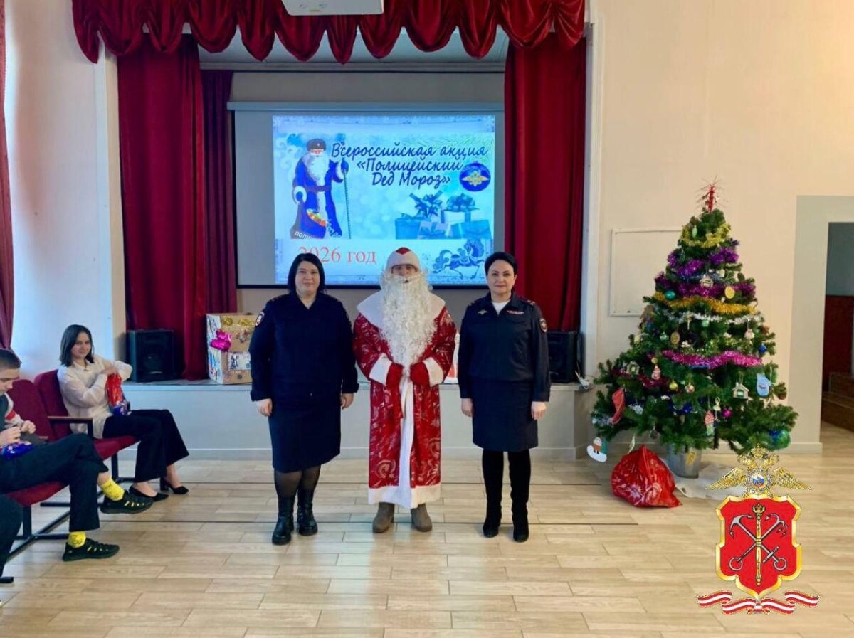 В Санкт-Петербурге и Ленинградской области полицейские проводят традиционную предновогоднюю благотворительную акцию. Правоохранители в костюмах Деда Мороза и Снегурочки навещают воспитанников социальных учреждений, чтобы поздравить их с праздниками. Первыми участниками акции стали дети из Центра содействия семейному воспитанию Фрунзенского района Петербурга. После прочтения праздничных стихов каждый ребенок получил подарок. Затем сказочные гости отправились в Приморскую школу-интернат в Выборгском районе Ленобласти, где также вручили воспитанникам сладкие подарки и игрушки. Во время визитов сотрудники полиции в игровой форме напомнили ребятам о важных правилах личной безопасности. В завершение встреч полицейские Дед Мороз и Снегурочка пожелали детям здоровья, счастья, исполнения желаний и призвали никогда не переставать верить в чудеса. Ранее мы писали о том, что в Петербурге прошла акция «Дед Мороз специального назначения».