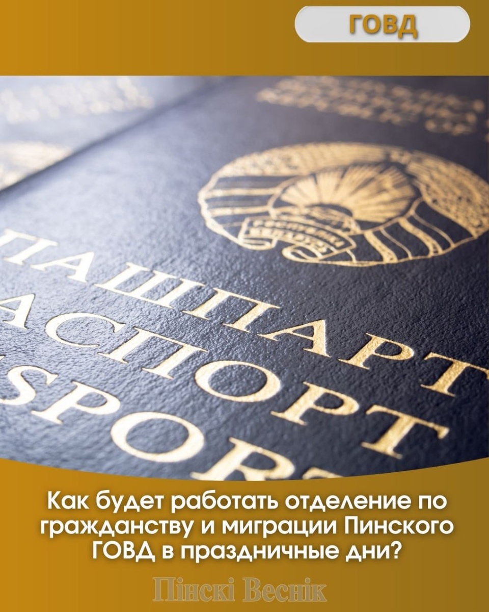 : ⏩24 и 31 декабря - до 19 часов, 6 января – до 16 часов в сокращенный день. 25 декабря, 1, 2 и 7 января – нерабочие дни. ✏️Министром внутренних дел Республики Беларусь согласован перенос рабочего дня с 3 января на 5 января. @Пинский Вестник 📱Ютуб 📱ВК 📱ИНСТАГРАМ 📱ОК 📱ФЕЙСБУК 📱ТИК ТОК Прислать новость