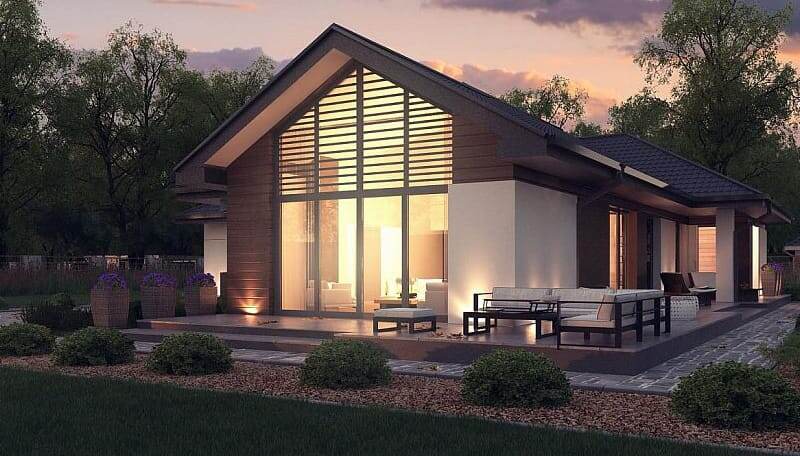 Проект одноэтажного пятикомнатного каркасного дома в современном стиле