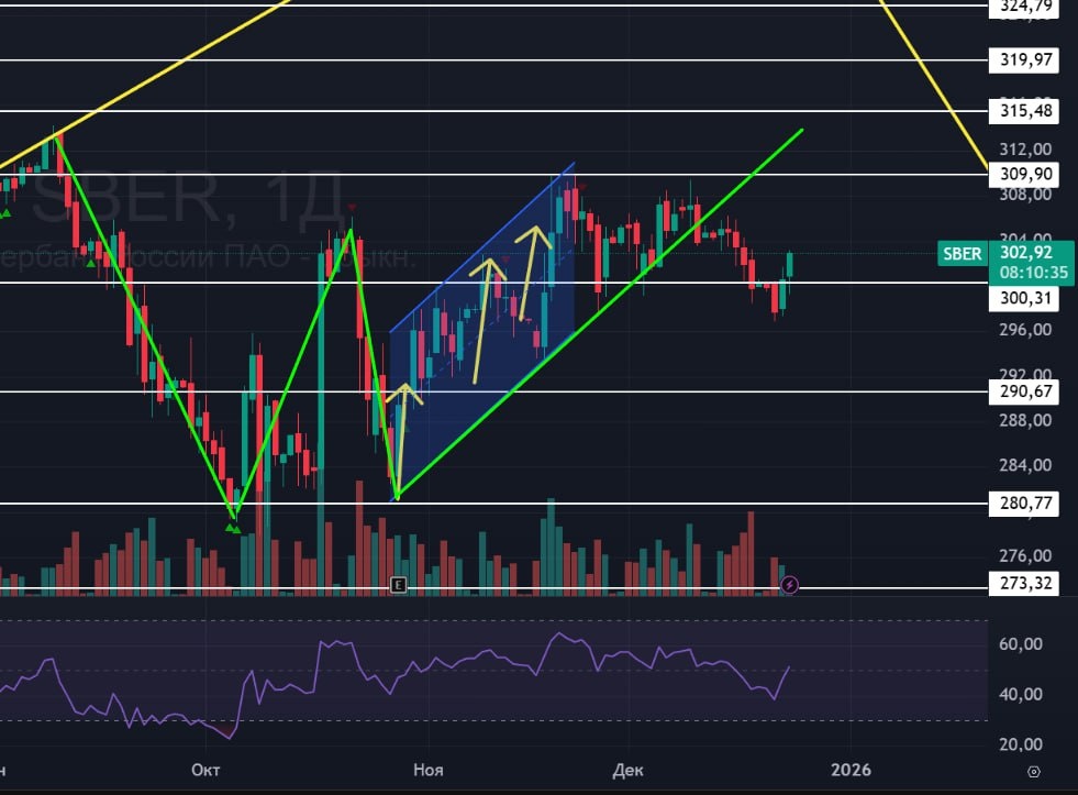 🏦 СБЕР 🟢 Последний раз писал про Сбер 9 декабря. а ведь это форвард нашего рынка. Сейчас он торгуется ниже чем при прошлом обзоре, хотя там выходил хороший отчет. Последнюю неделю были непонятные продажи в Сбере, которые многие объясняли, что это либо расконверт от БКС, либо это злой Кукл давит. Но последние два дня в СБЕРе зеленые, откупили половину всего давления. Так что непонятный Кукл - то он наводит страху, то на уровне 300 бежит прочь от трактористов. 🚗 Жду Сбер вверх. Локальные уровни 306, далее сопротивление 310. Тут не отработана фигура двойного дна до сих пор! #Сбербанк #SBER #SBRF #SBERF #Сбер #bogdanoffinvest