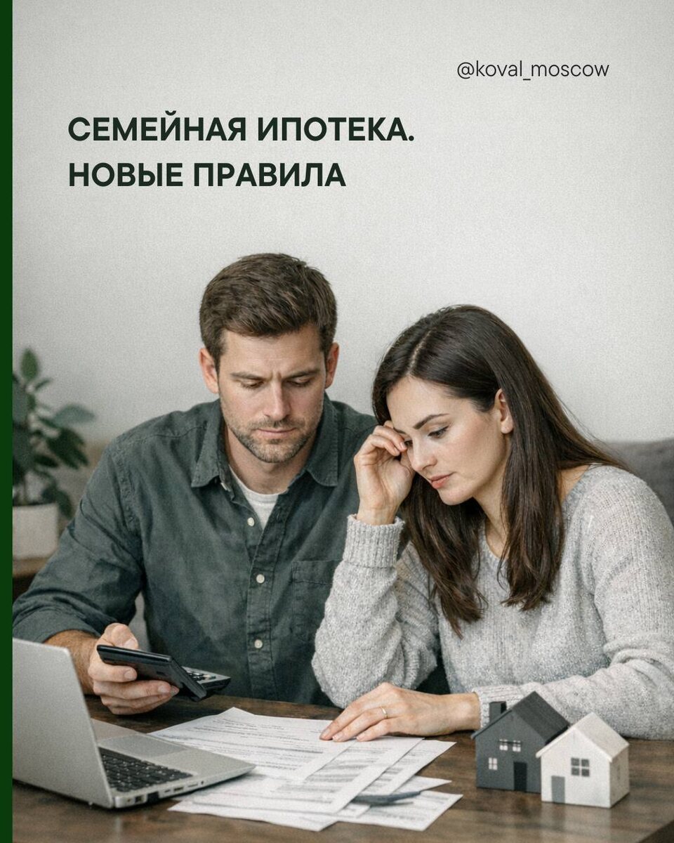 Теперь муж и жена автоматически станут созаёмщиками. Это значит, что кредитная история и финансовая нагрузка будут общими. Если один из супругов, например, уже имеет кредиты — это повлияет на условия для обоих. Что ещё может измениться: ▪️ Ставка для семьи с одним ребёнком может вырасти вдвое; ▪️ Возможны ограничения по регионам — ипотека только по месту прописки; ▪️ Квартиры-студии могут перестать одобрять по программе. Если вы планировали покупку — лучше действовать сейчас, пока действуют старые, более выгодные условия. Пишите, подберем варианты @Koval_MSK