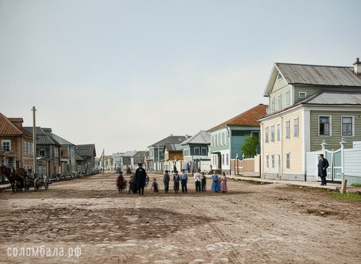 Характерный изгиб улицы легко узнаваем (район нынешней улицы Челюскинцев). Фото из альбома шестой экспедиции на Северный полюс голландским исследовательским судном «Виллем Баренц» в 1883 году. Каждым летом с 1878 по 1884 год голландская полярная шхуна «Виллем Баренц» совершила семь походов (экспедиций) на Шпицберген, в Баренцево море и Новую Землю. Эти поездки были организованы Комитетом ледового судоходства и преследовали две цели. Первой целью было установить мемориальные доски в местах, когда-то обнаруженных голландцами, например, на острове Амстердам (недалеко от Шпицбергена) и останках дома, где зимой 1596-1597 годов зимовал исследователь Виллем Баренц и вся его команда. Вторая цель состояла в сборе научных данных и образцов в области арктической флоры и фауны, морской метеорологии, физической океанографии и геомагнетизма. Каждую поездку сопровождал кто-то, кто записывал детали путешествия, события и природу. В 1878, 1879, 1881 и 1883 годах это был английский фотограф Уильям Дж