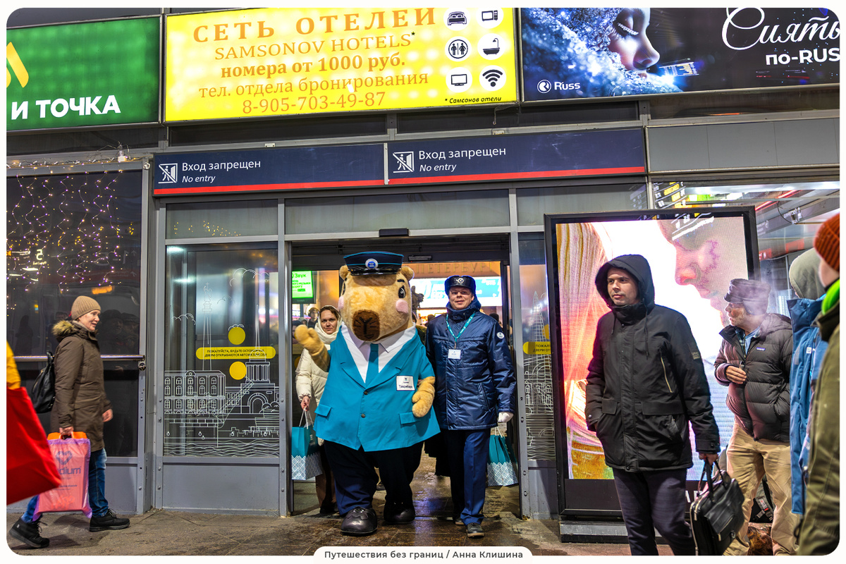 На перроне можно было сфотографироваться с талисманом поезда - Таврибарой. Он дарил памятные сувениры и вызывал улыбки на лицах пассажиров.