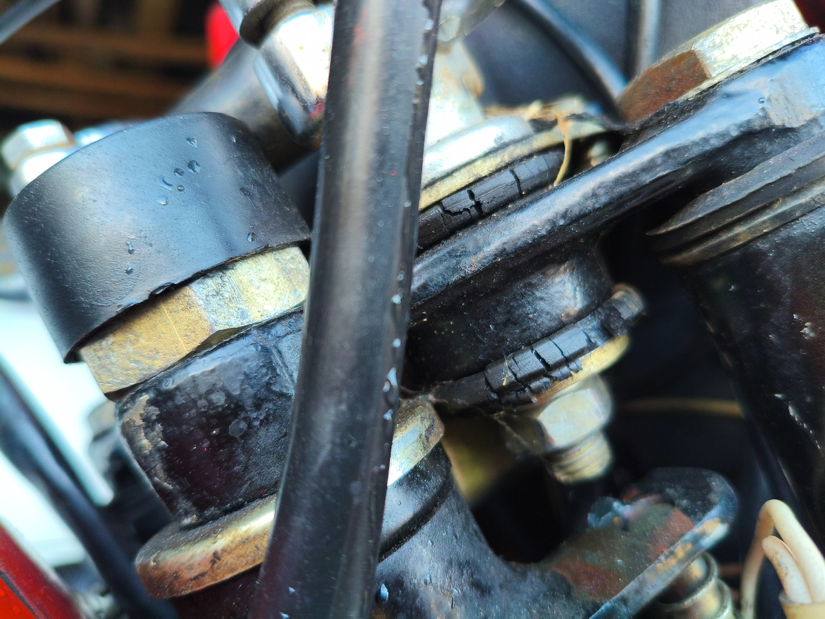 Добрый день, уважаемые читатели. С наступившим вас новым годом, а мы продолжаем пристально рассматривать и по возможности исправлять проблемы пилота. Вообще первое, что мне бросилось в глаза при покупке это растресканные демпферы руля. И это первое, что я заказал. Еще до того, как узнал о проблемах с мотором из прошлого поста. Поскольку погода стояла отличное, было настроение подготовить ЗиД к весне и начать сезон на нем, то их надо было менять. Буквально пару слов про сами демпферы. Во-первых слава унификации и эти резинки, как и кронштейны руля, одинаковые между восходом 3м-01, совой и пилотом. Поэтому еще есть в виде запасов в различных продавцов на авито. За одно были куплены и демпферы звезды. Я не верю, что с ними все хорошо. Но о звездах будет отдельный пост. Там меня ждал сюрприз. Поэтому сосредоточимся на руле. После извлечения старых демпферов выяснилось, что повреждения носят скорее декоративный характер. И потрескался только буртик. Сама резинка пусть и деформирована, н